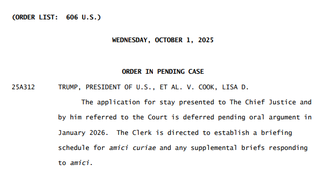 Breaking news: The Supreme Court ruled Federal Reserve governor Lisa Cook can remain in her job for now and announced it will hear a case in January over President Donald Trump’s attempt to remove her. https://t.co/cgjTnSvtOV