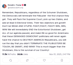 That one where head MAGAt Psycho tells his R MAGAt psycho minions to “TERMINATE THE FILIBUSTER!!!” to get his ass out of being blamed for his shutdown.