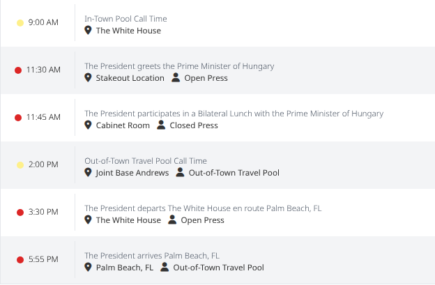 President Shitshow’s public schedule for…