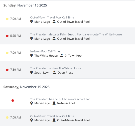 President Shitshow’s public schedule for…
