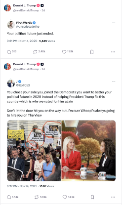 Right after that, he spent the evening amplifying every insult anyone threw at her, reposting attacks about Right after that, he spent the evening boosting every attack anyone threw at her, reposting digs about her loyalty, competence, and political future like he was curating a burn book instead of running the country.