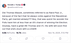— Thomas Massie for Congress (@MassieforKY) November 3, 2025