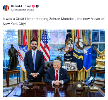 President Who Thinks he’s Charming was charmed by New York Mayor Elect.