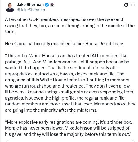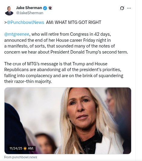 Punchbowl News reporter Jake Sherman tweeted this morning that she might be the first MAGA rat to flee the sinking ship, but she’s almost certainly not the last.