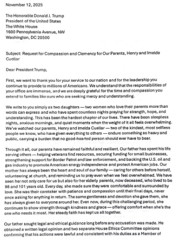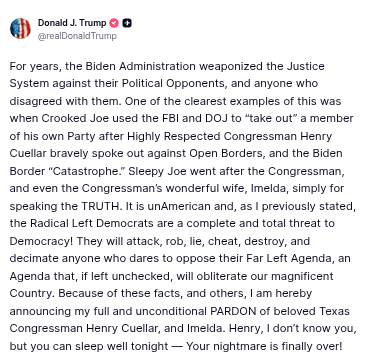 He announced this morning that he’d be pardoning Democratic Rep. Henry Cuellar and his wife.