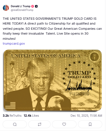 The whole reason for the roundtable was to announce that the pay to enter the US “Trump Gold Card” was finally here.
