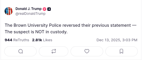 The fuckstick added to confusion on Saturday during the incident at Brown Uni, by saying the suspected shooter was in custody.