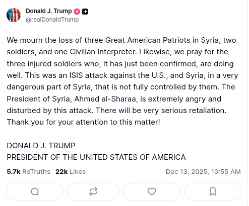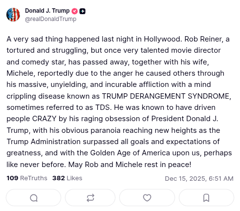 This is how the US President responded to the tragic deaths of the Reiner’s.