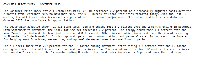 Here's why: Usually the BLS collects prices all through November. But the shutdown kept it closed for the first half of November.