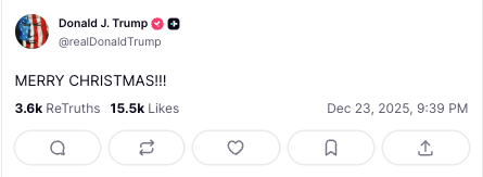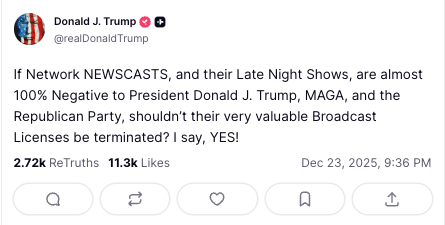 The sequence was brief: a poll, more threats against broadcasters and the Constitution, then a Merry Christmas.