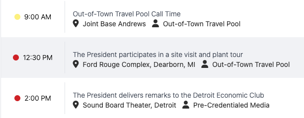 Michigan Public NPR (01/13/2026): The day trip will include a tour of a Ford factory in Dearborn that makes F-150 pickups, the bestselling domestic vehicle in the U.S. The Republican president is also set to address the Detroit Economic Club at the MotorCity Casino.