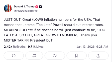In between telling Minnesota that “RETRIBUTION” was coming and encouraging Iranians to continue to fight their own authoritarian government he posted about the CPI numbers released this morning.