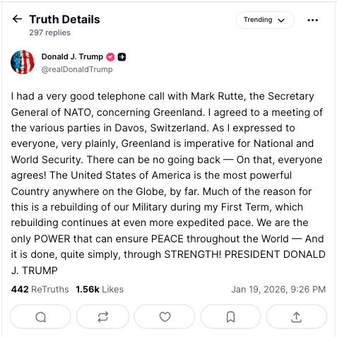 — Karoline Leavitt (@PressSec) January 20, 2026