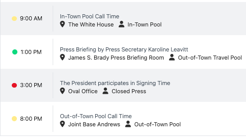 WH pool: "Your pooler can confirm that President Trump is the guest at today's briefing, which will mark his first anniversary of the second administration."