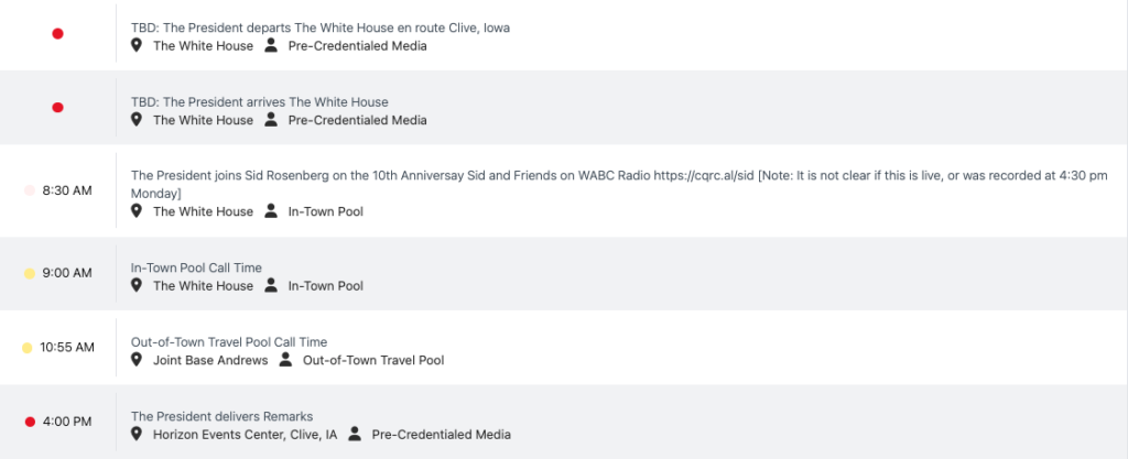 President Shitshow’s public schedule for…