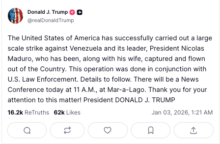 — The Associated Press (@AP) January 3, 2026