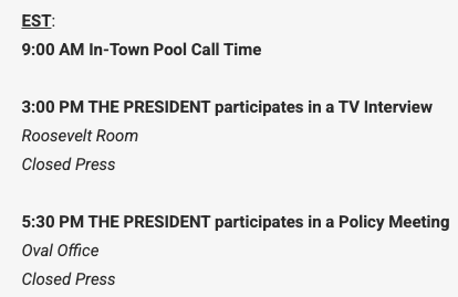 President Shitshow’s public schedule for…