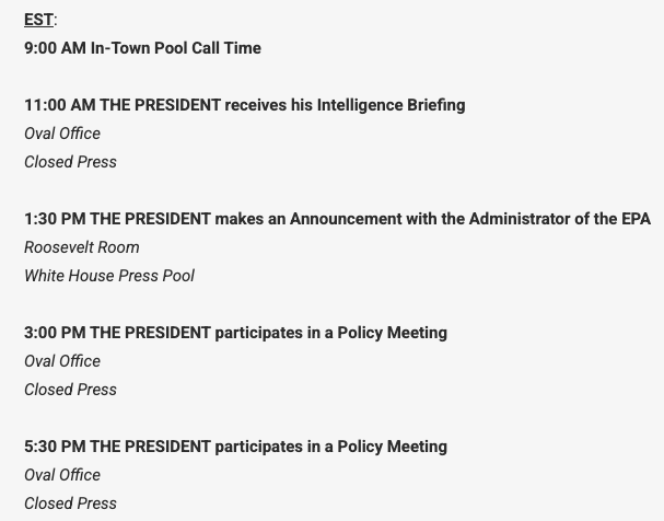 President Shitshow’s public schedule for…