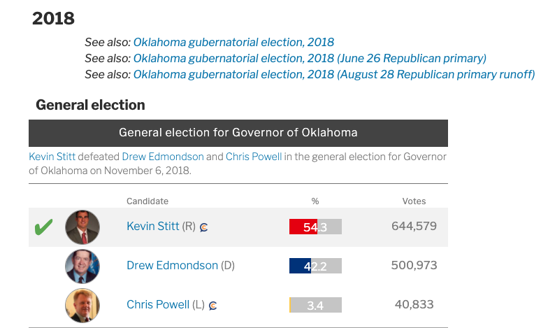The RINO Governor of the Great State of Oklahoma, in which I won all 77 Counties, three times (The only