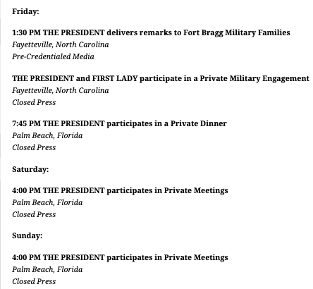 President Shitshow’s public schedule for…