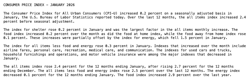 — BLS-Labor Statistics (@BLS_gov) February 13, 2026