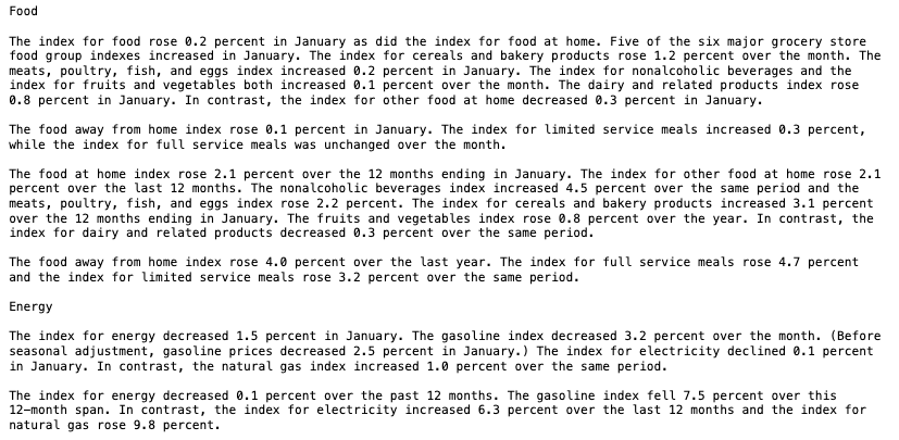 The BLS released the consumer price index for January.