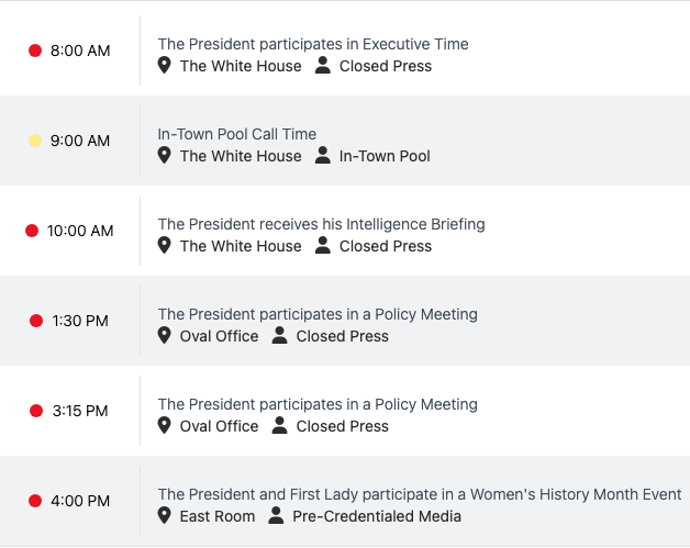 President Shitshow’s public schedule for…