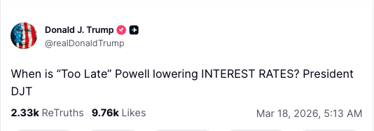 The Federal Reserve is meeting today, with Fed Chair Powell expected to speak to reporters @ 2:30 pm D.C., time. Ahead of the fed decision Puddle posted his usual attack on Powell: