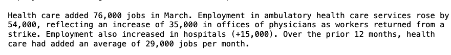 From my first couple of read throughs it appears the biggest gain was in healthcare.