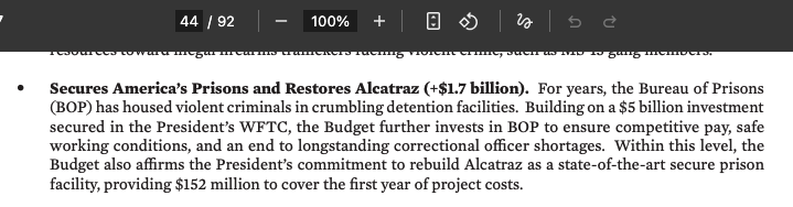 Well, I guess, I was supposed to be a movie maker we’re talking, we started with the movie making it’ll end. I mean it-it represents something very strong very powerful in terms of law and order. Our country needs law and order Alcatraz is I would say the ultimate right Alcatraz Sing Sing and Alcatraz. The movies but uh it’s right now a museum believe it or not a lot of people go there. It housed the uh most violent criminals in the world and nobody ever escaped, one person almost got there, but they as you know the story, they found his clothing rather badly ripped up and uh it was a lot of shark bites a lot of lot of problems. Nobody’s ever escaped from Alcatraz and just represented something uh strong having to do with law and order. We need law and order in this country and so we’re going to uh look at it some of the people up here are going to be working very hard on that. And uh we had a little conversation I think it’s going to be very interesting we’ll see if we can uh bring it back in large form add a lot. But I think it represents something right now it’s a a big hulk that’s sitting there rusting and rotting, uh very uh you look at it it’s sort of an you saw that picture that was put out it’s sort of amazing, but it it sort of represents something that’s both horrible and beautiful and strong and miserable weak it’s got a lot of it’s got a lot of qualities that are interesting and I think they they make a point. Okay are you guys okay I want to…