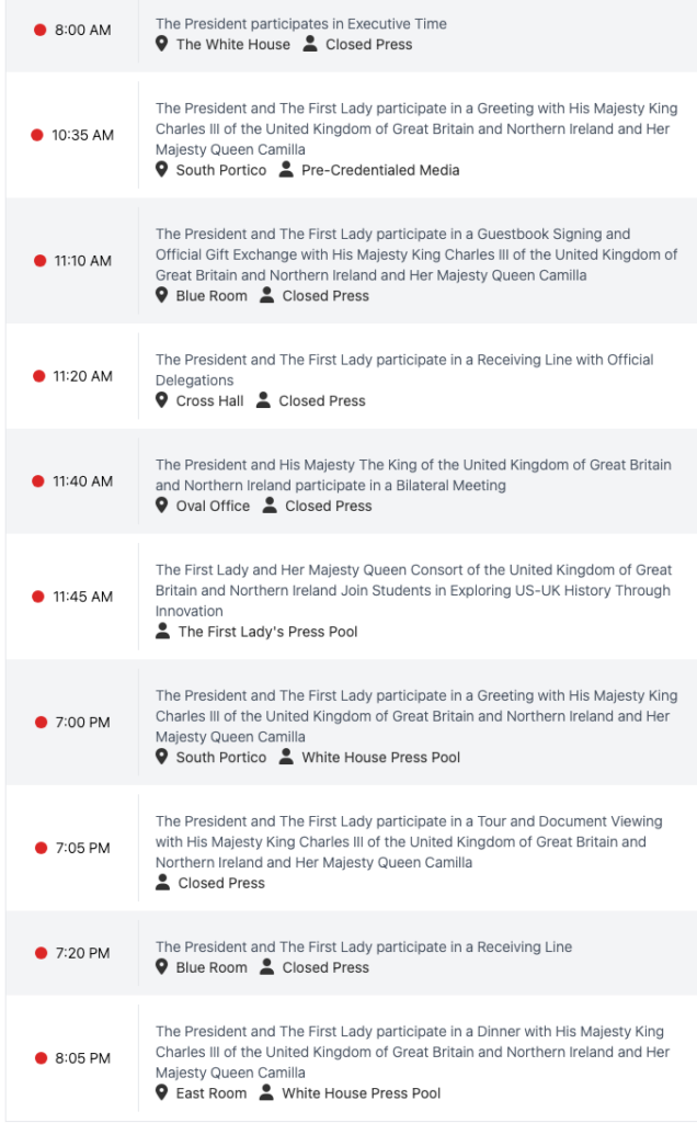 10:35am – White House Welcome Ceremony for King Charles III