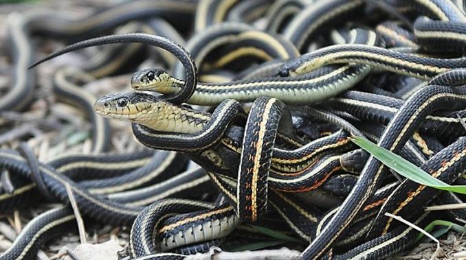 Female garter snake in mating ball; Photo by Chris Friesen, courtesy of Oregon State University