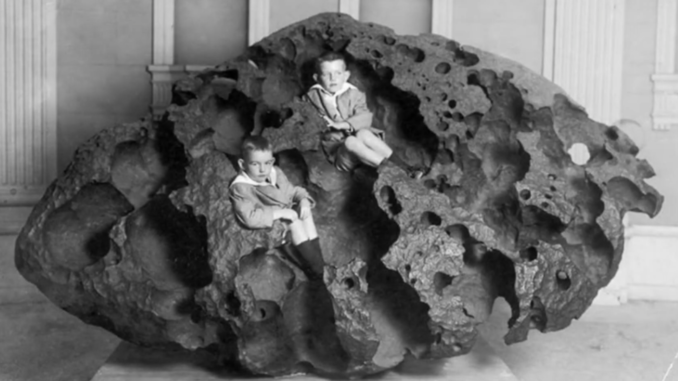 Tomanowos-meteorite-1905 The Willamette Meteorite, probably circa 1905. Image captured by the News Blender.